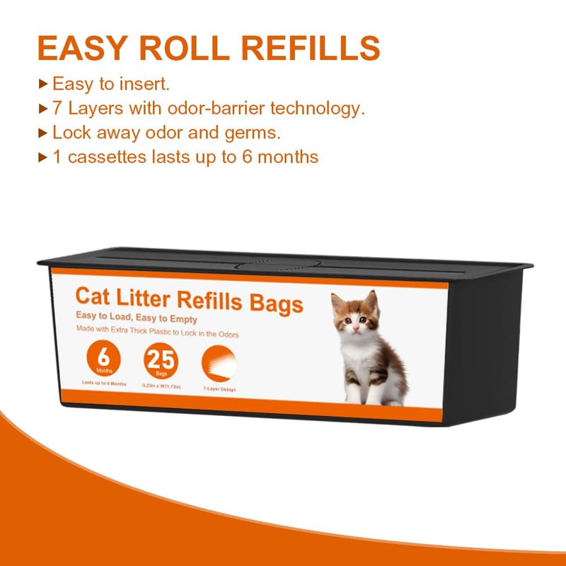 - Compatibility: These cat litter refill bag cartridges are compatible with Litter Cat Genie Easy Roll Continuous Pail.One Easy Roll refill provides 6 months supply with one cat!