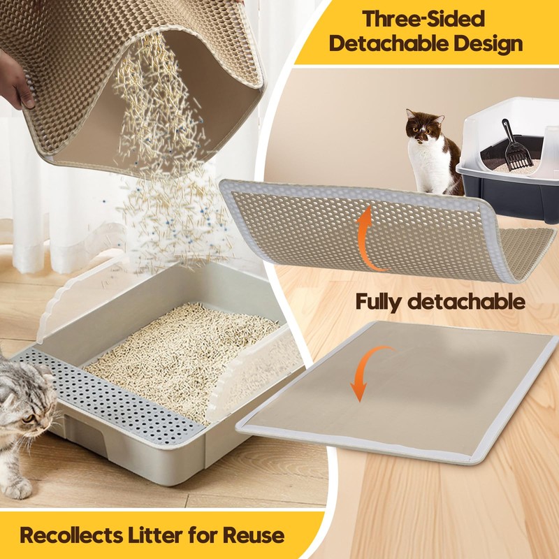 Say goodbye to scattered litter and messy floors! With its dual-layer design, gentle EVA material, and easy-to-clean features, this cat litter mat ensures a cleaner, more comfortable home for both you and your furry friend. Designed with convenience and durability in mind, it’s the perfect addition to your pet care essentials, making cleanup effortless while keeping your space neat and tidy.
