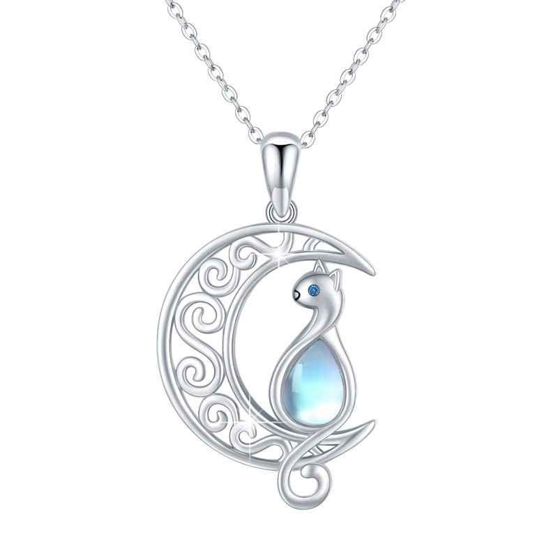Cat Necklace for Women Sterling Silver Moonstone Moon Necklace Animal Necklaces Jewellery Gifts for Mum Daughter