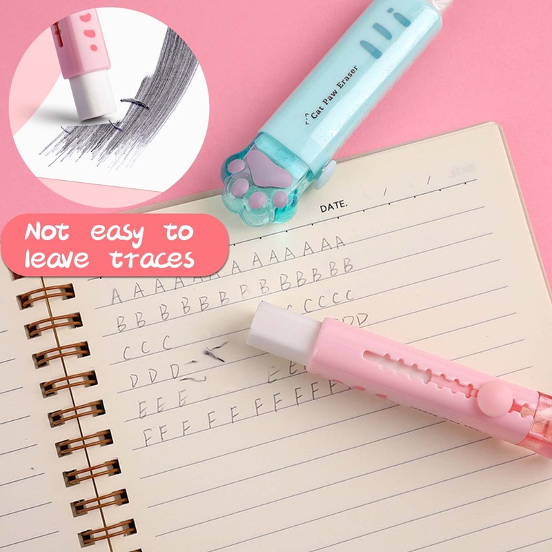 - Good Quality:This cute eraser is made of high-quality plastic shell and rubber core.The sliding housing is durable and not easy to damage.The replaceable rubber core has strong toughness and is not easy to break,and can easily clear the traces left on the paper.