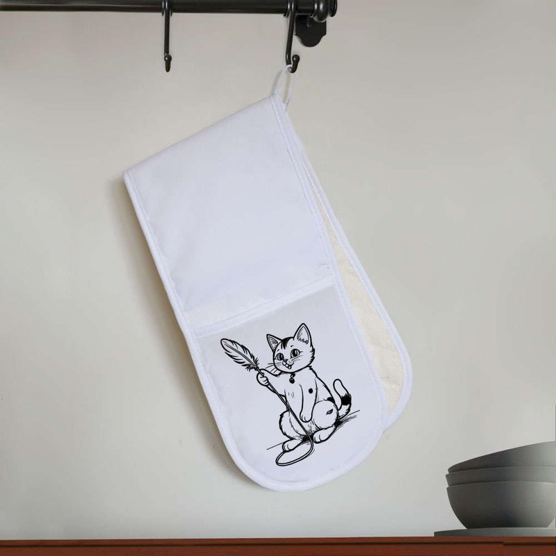 'Cat Playing With A Feather Toy' Double Oven Glove/Mitt (OG00043328)