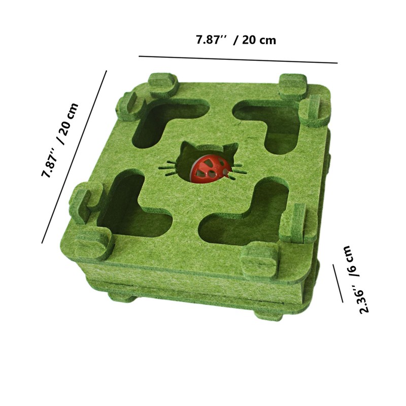 Cat Puzzle Toy, Soft Felt Intelligence Mind Game Track Balls Interactive Kitten Toy Puzzle Box for Indoor Cats, Easy to Assemble [Green]