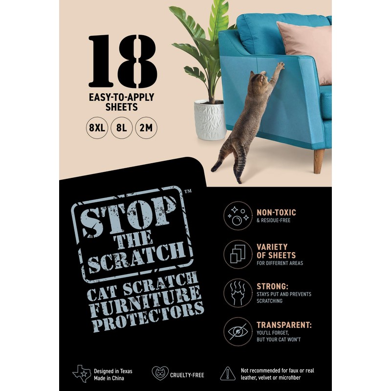 - 18-Pack with Customizable Sizes - Includes 18 clear sheets in 3 different sizes that you can trim to fit any surface—sofas, chairs, cabinets, car doors, and more. Full-coverage protection wherever your cat claws.