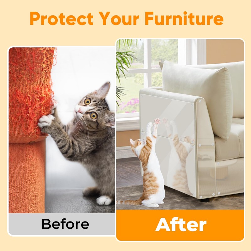 - 【High-quality Material, Safe for Pets】This cat scratch furniture protector is made of excellent material, no chemical odor, durable and safe for pets, anti-scratch design, won't be easily destroyed by kittens, can be cut to any size and shape according to the furniture, transparent cat paw sofa tape is completely transparent after installing it to the sofa, it won't affect the furniture's aesthetics.