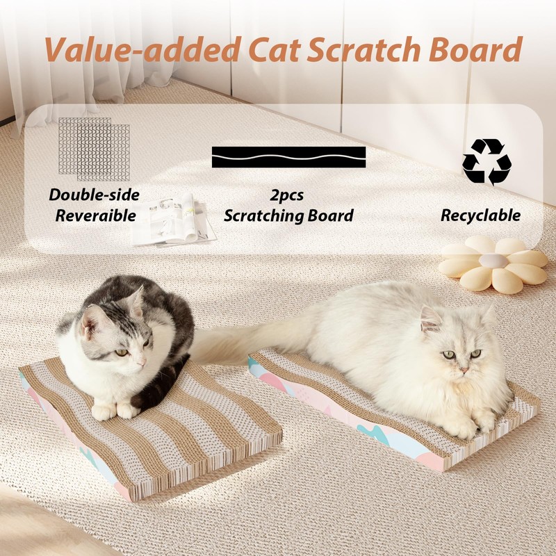 Cat Scratch Pad,2 pcs Large Cat Scratcher Cardboard with Premium Reversible Scratch Textures Color Matching Design