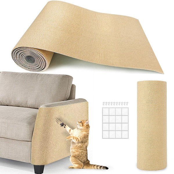 Cat Scratching Carpet Mat Furniture Protector, Covering DIY Cat Tower,and Replacement Pads, Self-Adhesive Trimmable Mat 78.7x15.8in (Khaki)