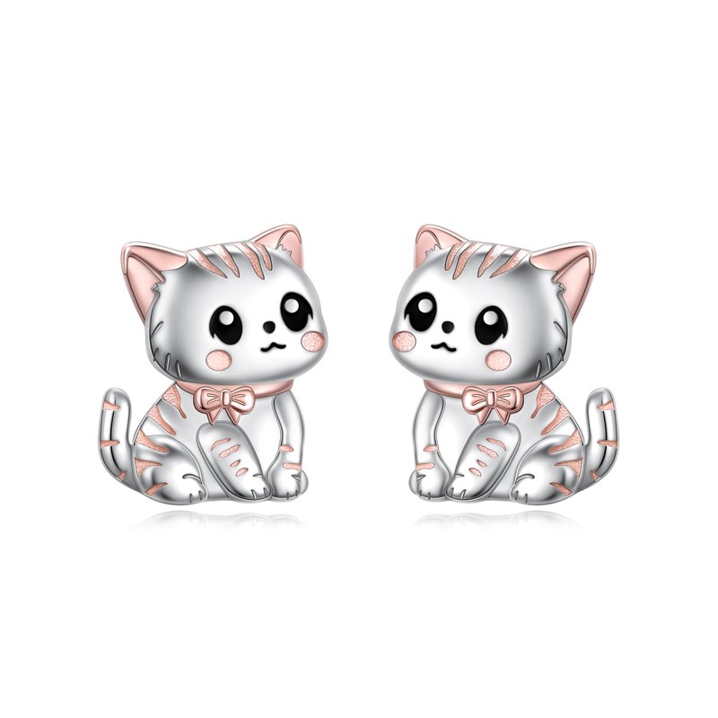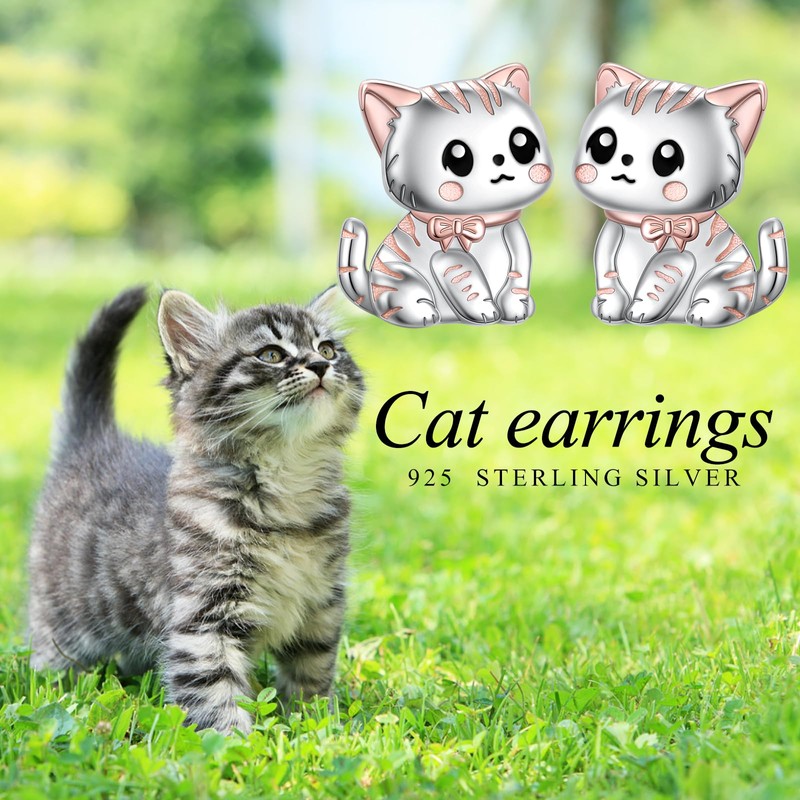 Cat Stud Earrings 925 Sterling Silver Cute Cat Earrings Animal Kitten Stud Ea...