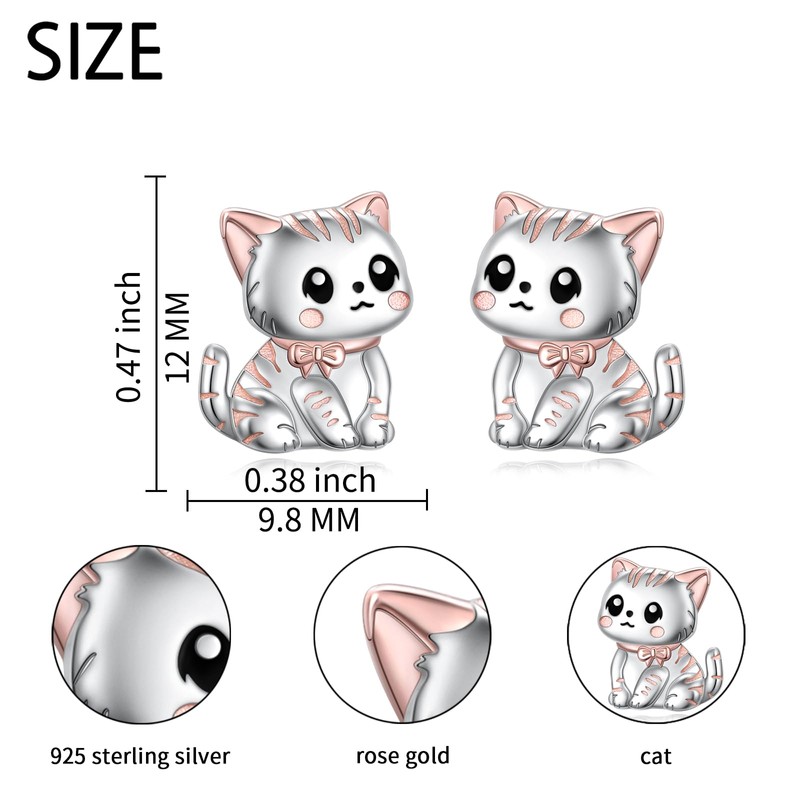 • 【Hypoallergenic Material】The cat earrings are made of high-quality 952 sterling silver, free of lead and nickel, without discoloration. Comfortable to wear, Don't worry about the animal earrings irritating your ears.