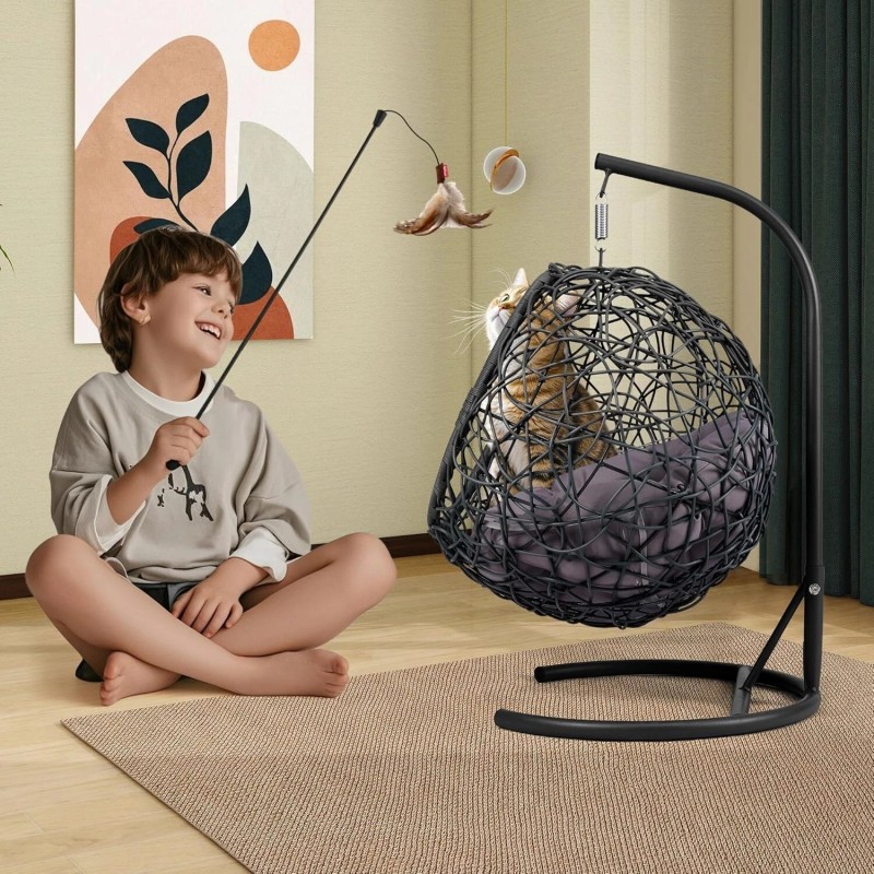 - HIGH-QUALITY MATERIALS- Our cat hammock features a sturdy metal structure with swing, constructed with solid and unique weaving techniques; Excellent stability and durability ensures a safe haven for your beloved pet