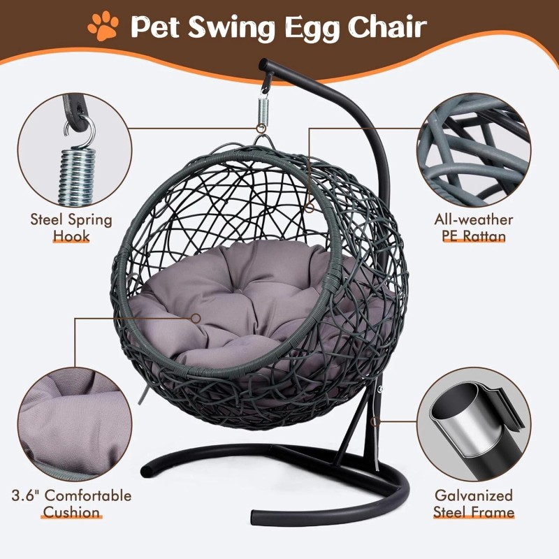 Cat Swing Bed with Stand & Cushion Gray