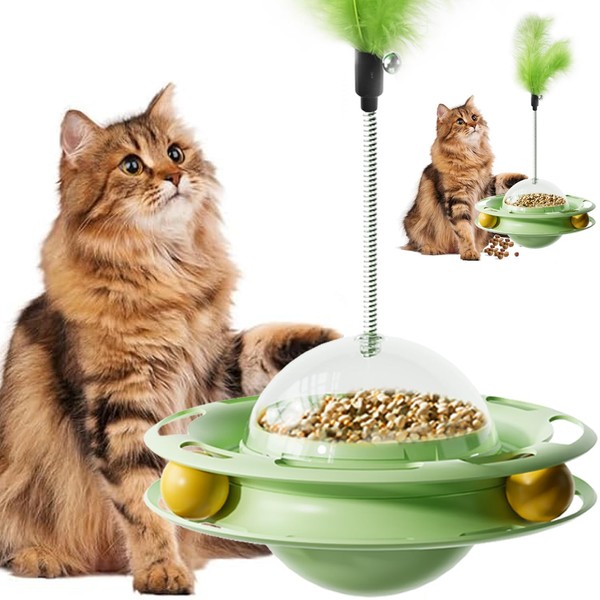 Cat Toys Interactive Track Balls,3 in 1 Cat Roller Toy for Indoor Cats,360° Rotating Food Leakage Device,Solve cat Anxiety and Attract Cats to Play(Green)