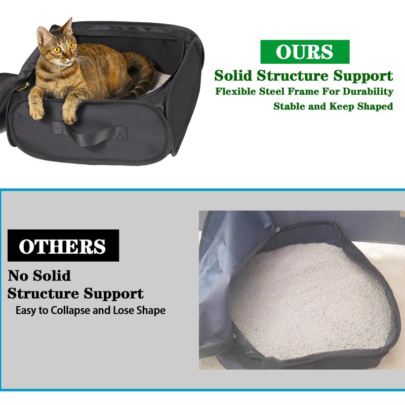 - litter box offers a easy way to accommodate your cat’s bathroom needs and gives great convenience to you when you are traveling with your cats. Easy to carry it to anywhere and use it anywhere
