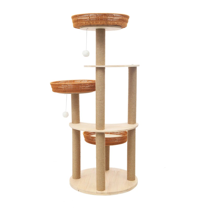 Cat Paradise: This product adopts a reasonable structure, combining 3 soft flannel cushions for resting, multiple cat scratching posts and hanging balls for playing according to the cat's habit of jumping and climbing, so that the cat can enjoy itself to its heart's content, as well as lie down on the padded nest to rest or observe the environment.