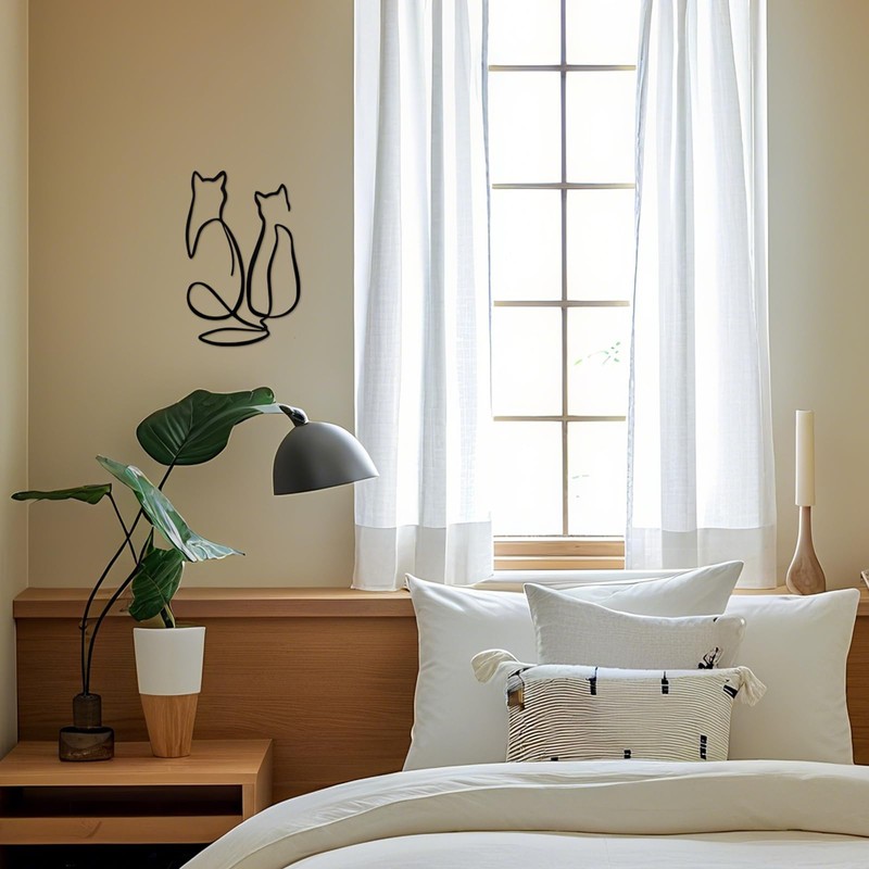 Cat Wall Decoration Metal, Minimalist Metal Black Cat Decoration, Wall Decoration Living Room, for Bedroom, Balcony, Patio, Elegant, Timeless Design