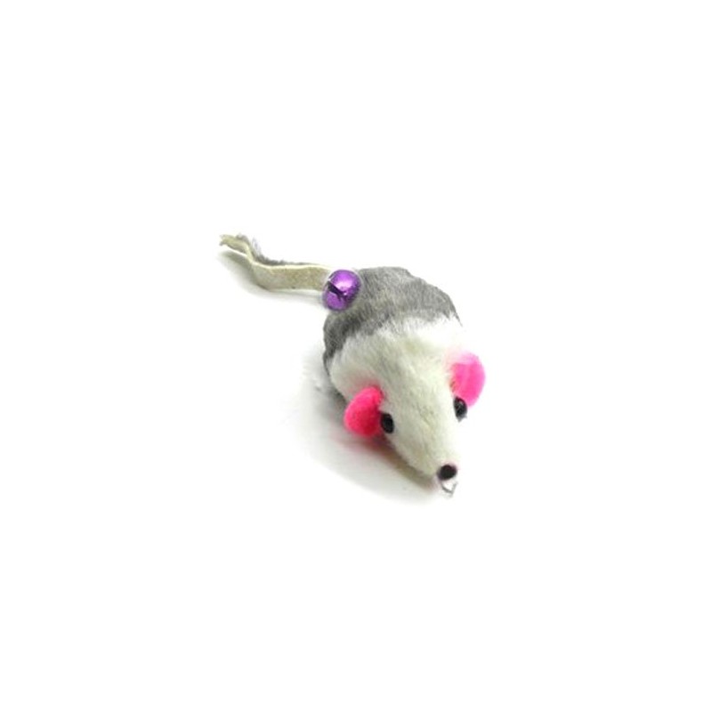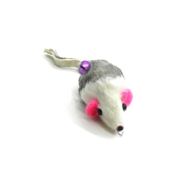 - Real rabbit fur Gray & White mouse cat toy with a leather tail. Mouse body is about 2 inches long