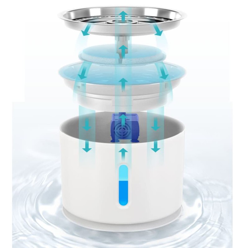 - 【Food-grade Material & Triple Filtration System】The pet water fountain is made from food-grade material, BPA free PP resin, 304 stainless steel tray, which is safer and more durable than plastic cat fountain.