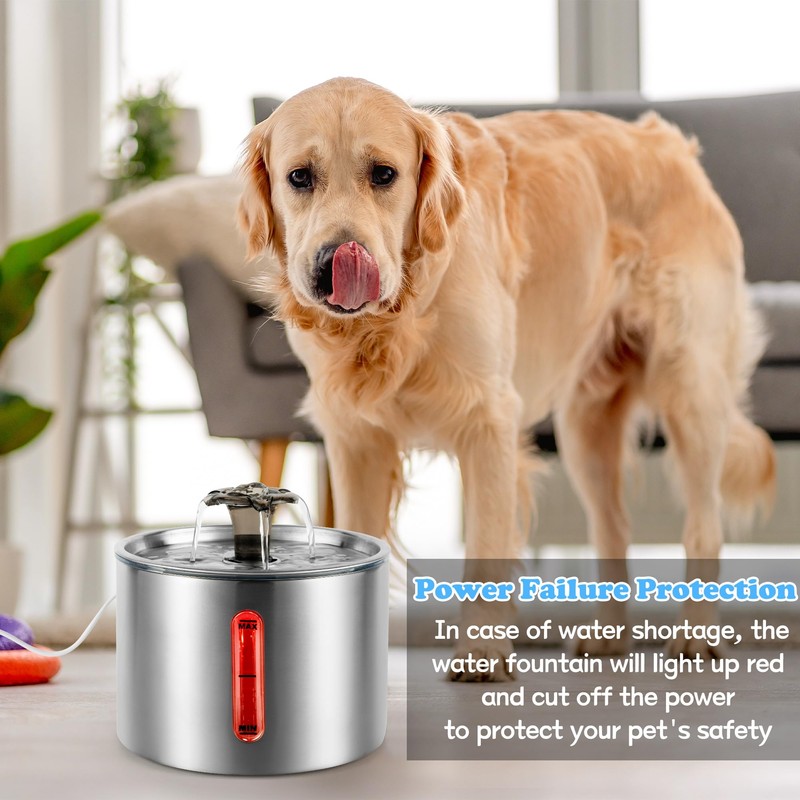 - Ultra-Quiet ≤25dB Pump & Power Failure Protection Advanced silent technology ensures peaceful operation—quieter than a whisper. The pump automatically shuts off during low water or power outages, protecting your pets and home from accidents.