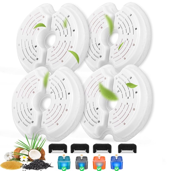 Cat Water Fountain Filters for 84oz/2.5L Stainless Steel Pet Fountain and 67oz/2.0L Plastic Cat Drinking Fountain, 4 Pack Pet Replacement Filters with 4 Pre-Filter Sponges
