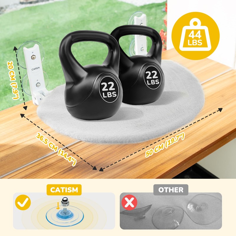 - 【Upgraded Suction Cups】Our cat window perch feature high quality spiral suckers with a diameter of 8.5cm /3.35 inches, stronger suction. Before you install the suction cups, please soak in hot water for 3 minutes to soften, then dry them until they are just slightly damp, and clean the window. Finally, press them firmly against the glass and tighten clockwise. Make sure the sucker is firmly attached to the contact surface