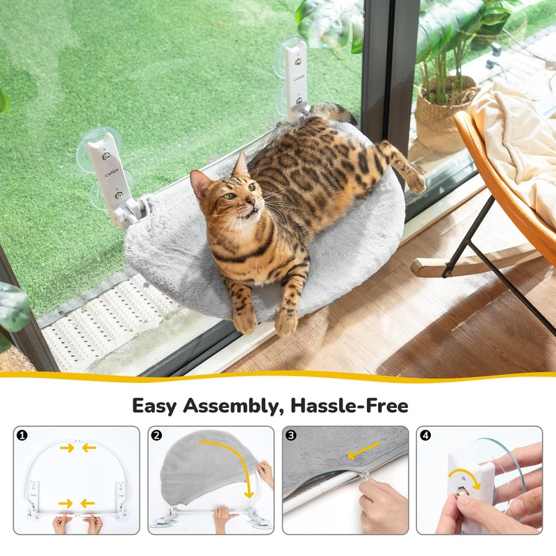 - 【Comfortable Cat Window perch】Set up a cat hammock for window on your balcony!! Indulge your cat's love for sunbathing with our premium window cat perch, let them get a 360°full view of the surroundings. Your cats would like to enjoy hours of relaxation and happiness in this perfect lounging area