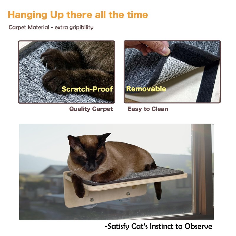- 【Easy Installation】With easy-to-follow instructions and all hardware, which can be easily installed. The plush cushion is removable and easy to clean, the platform of cat bed window is a great place for a comfy nap, and it’s great for face rubbing and nuzzling.