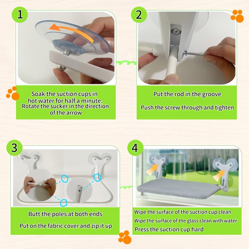- Powerful Suction, Ensuring Cat Safety: Are you still concerned about the cat window bed falling? Our product is equipped with 6 powerful suction cups arranged in a triangular pattern, ensuring even force distribution. In contrast, many other products only have 4 ordinary suction cups and are prone to falling. Our design provides stronger and more stable suction, offering a safe resting place for your cat. It's perfect for cats that love to lazily rest by the window
