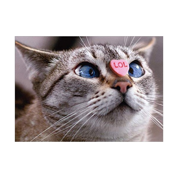 Cat with Candy Heart on Nose Funny/Humorous Valentine's Day Card