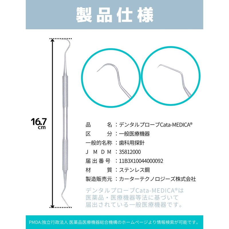- ✅【医療機器】デンタルプローブCata-MEDICAは医薬品・医療機器等法に基づいて届出されている「一般医療機器」です。PMDA:独立行政法人 医薬品医療機器総合機構のホームページより情報検索が可能です。