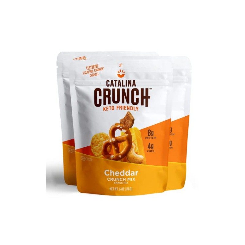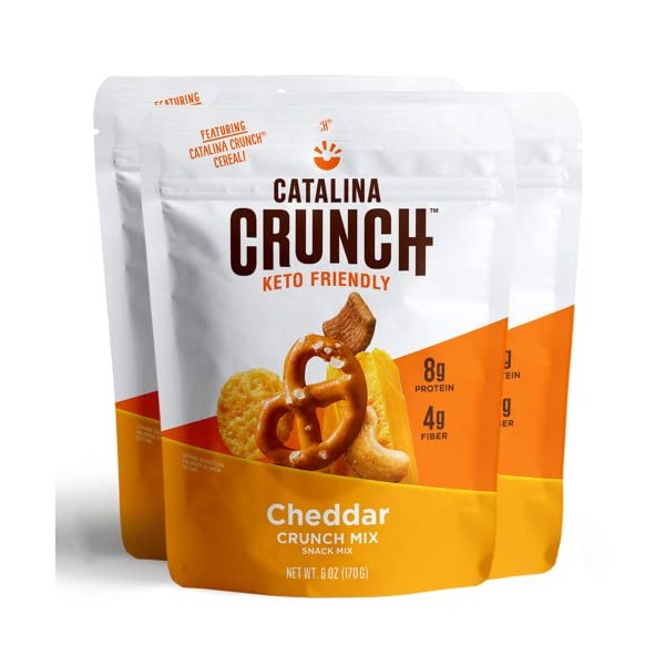 - NEW PACKAGING, SAME KETO FRIENDLY SNACKING: Includes 3 resealable bags (6oz each) Catalina Crunch Keto Friendly Cheddar Crunch Mix