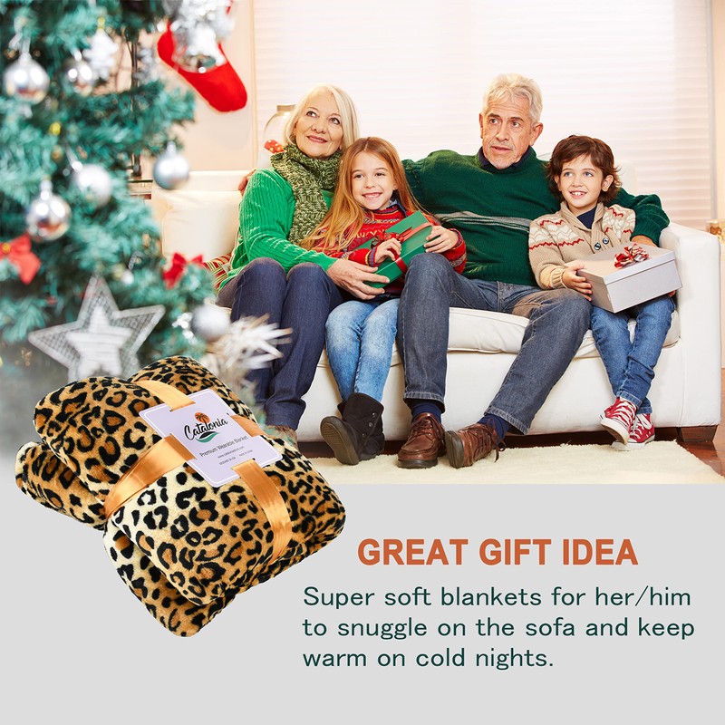 Catalonia Classy Wearable Snuggle Blanket with Sleeves and Pocket, Soft Cosy Fleece Slankets for Women Fluffy Plush Throws Winter TV Blanket for Sofa Couch 185 x 130 cm, Leopard
