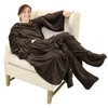 Catalonia Wearable Fleece Blanket with Sleeves and Foot Pockets for Adult Women Men, Micro Plush Comfy Wrap Sleeved Throw Blanket Robe Large, Brown