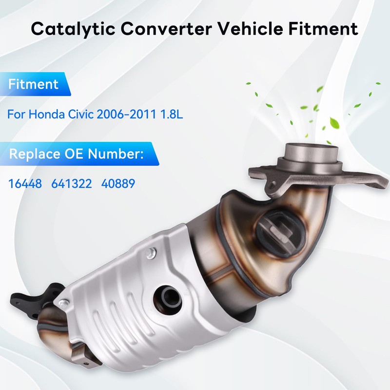 - 🔧 CATALYTIC CONCERTER FITMNET: Catalytic converter precision-engineered to match OEM specs 16448, 641322, 40889, direct replacemenat OE. The catalytic converter fits for Honda Civic 2006-2011 1.8L
