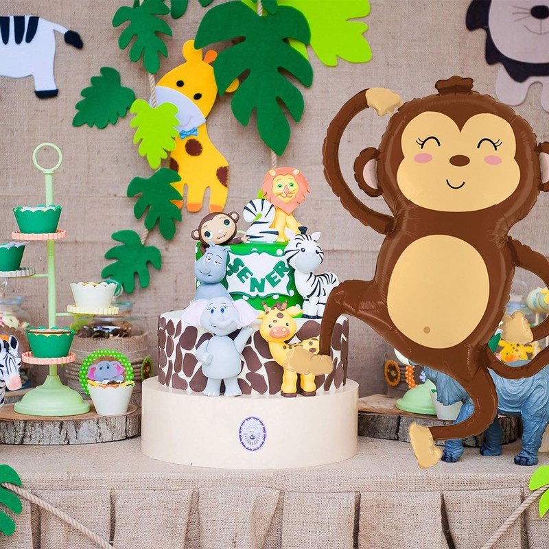 - Safari balloons: 1 x monkey balloon. Size: 60 x 76 cm. These zoo monkey balloons are perfect for creating a warm and welcoming atmosphere at your children's birthday party. Use them as centerpieces, hang them from the ceiling, or create a balloon arch for a stunning backdrop. The foil balloons are perfect for party decorations and birthday decorations.