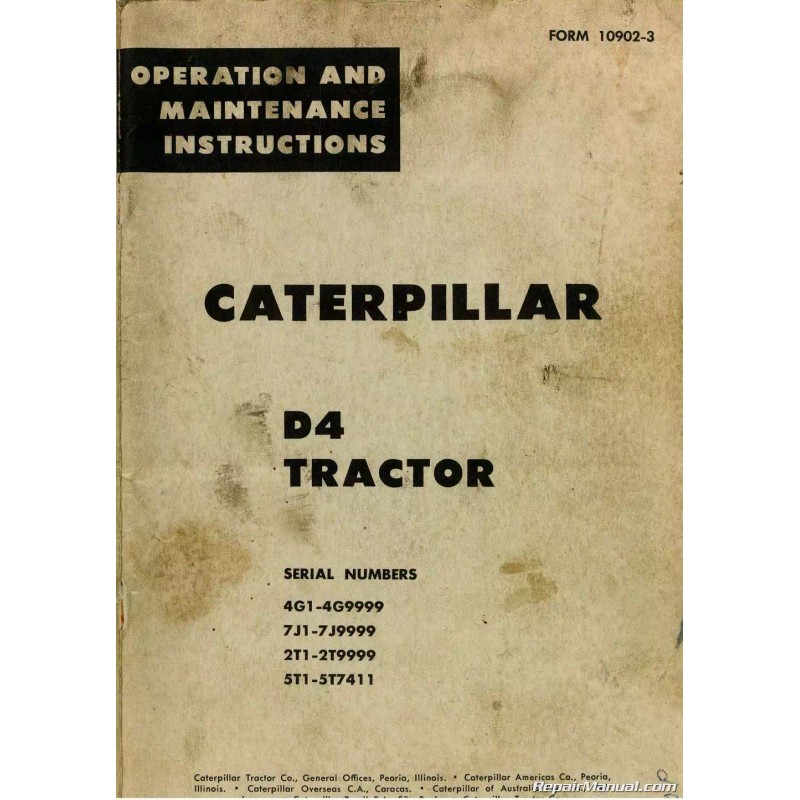 Caterpillar D4 Tractor Operators Manual Models Covered