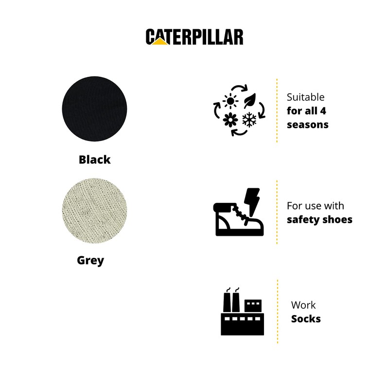 Caterpillar Heavy Duty Worksocks 6 Pairs Professional Work Socks Made of High-Quality Cotton with Elastic Lycra Fibre, gray