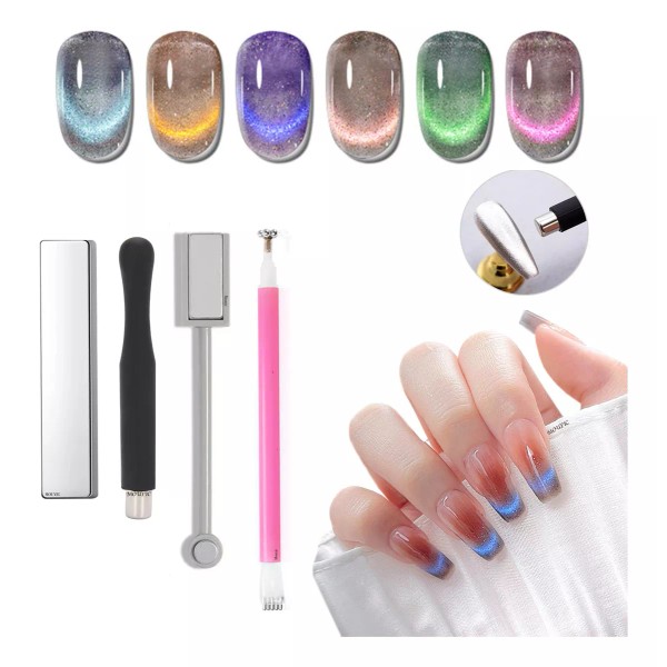 Cateye 4 Imanes Para Efecto Ojo De Gato + 6 Gel Semipermanente