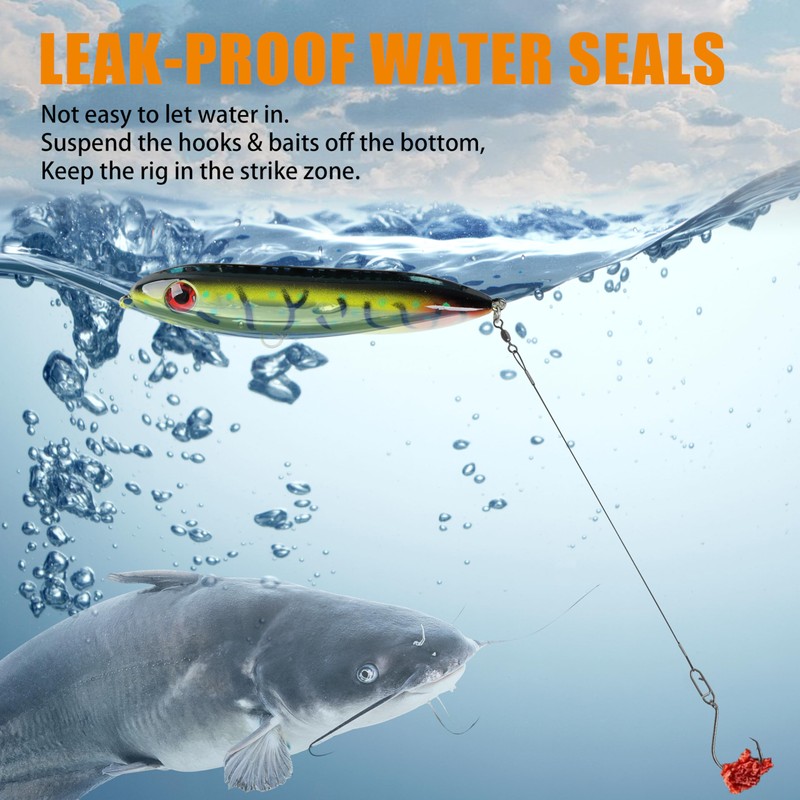 - 【Catfishing Method】Catfish float rig can be used for drift,trolled or simply tight-lined on the bottom.The buoyancy provided by the catfish float keeps catfish bait off the bottom, out of snags and in the strike zone. Great for bank,lake,rivers and in ponds fishing.