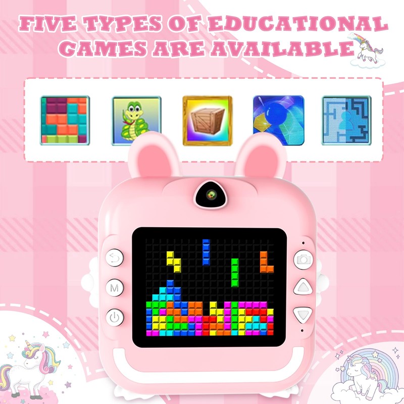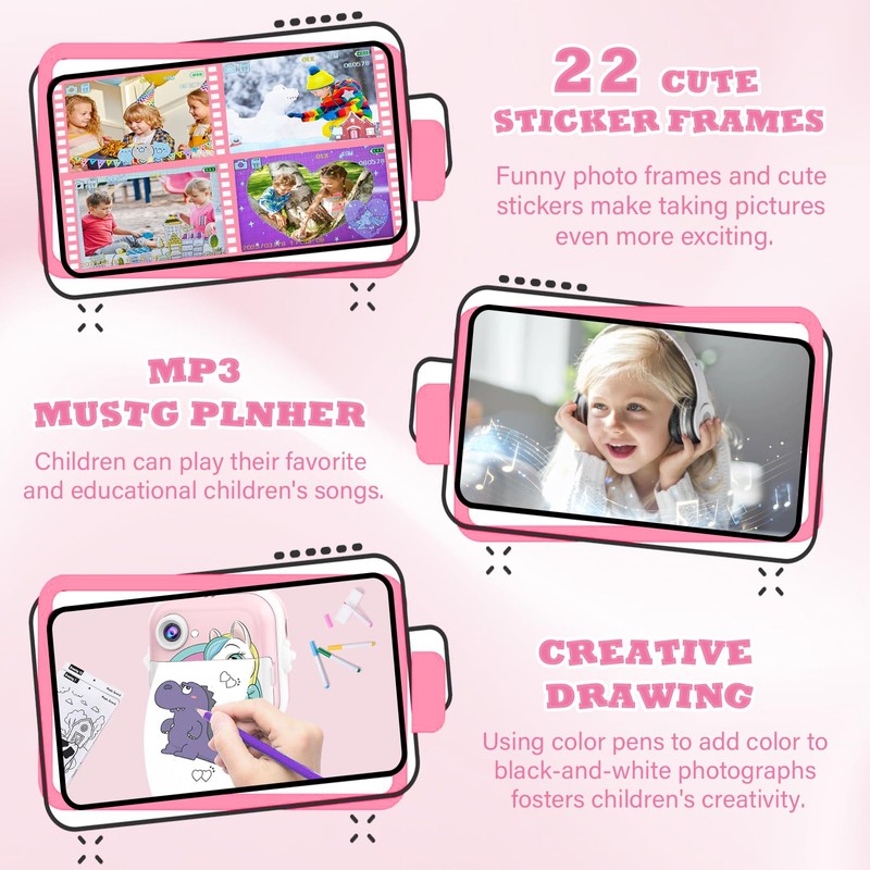 - Ausgestattet mit einem 2,4-Zoll-IPS-Bildschirm zum Schutz der Augen, bietet sie 1080P HD Videoaufnahmen und ein hochauflösendes 48 MP Objektiv für feine Strukturen und lebendige Farben. Und die kinder kamera mit fotos drucken wird mit 5 lustigen Filtern und 26 verschiedenen Cartoon-Fotorahmen geliefert, um die künstlerische Kreativität Ihres Kindes zu inspirieren.