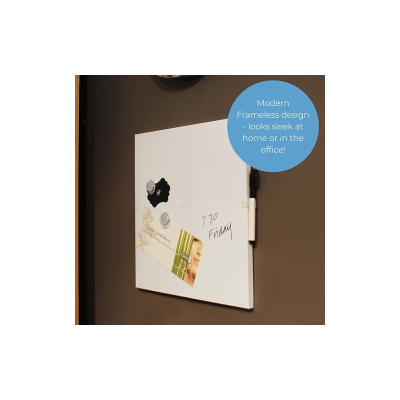 - MODERN AESTHETIC: Featuring a sleek, frameless design, this dry erase board effortlessly blends into any home or office setting. Add a touch of contemporary style while staying organized.