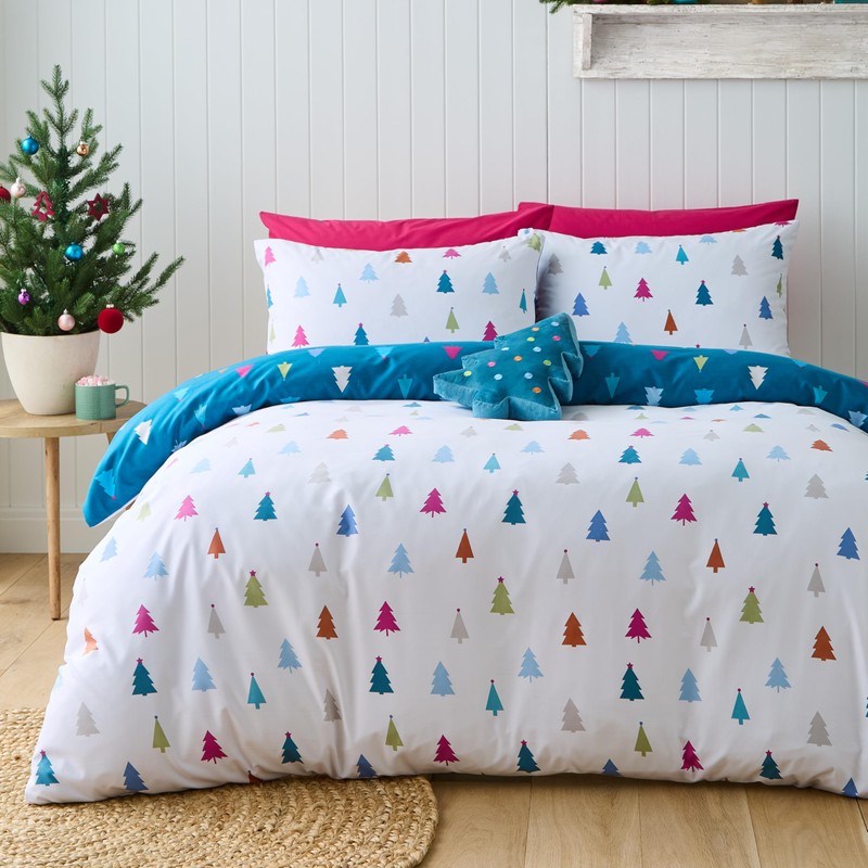 Catherine Lansfield Christmas Tree Soft Microfibre Reversible Single Duvet Cover Set with Pillowcase White