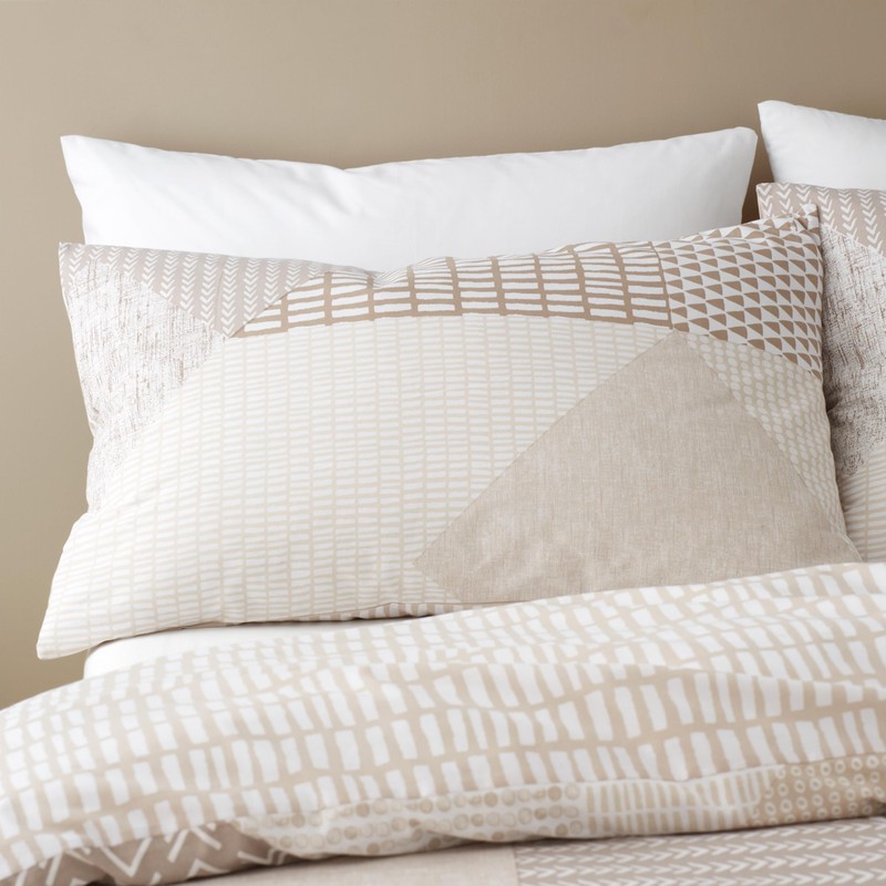 Catherine Lansfield Larsson Geo Reversible Single Duvet Cover Set with Pillowcase Natural