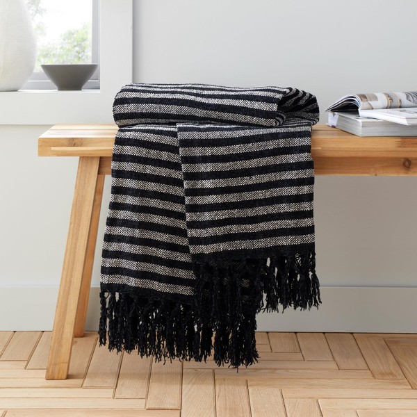 Catherine Lansfield Stripe Chenille 130x170cm Blanket Throw Black