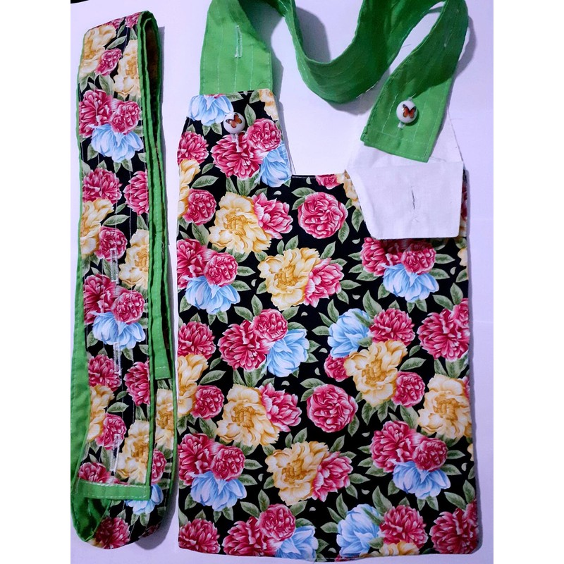 Catheter Night Bag Holder, Cover with a Handle and Over Shoulder Strap.100% Cotton. Floral Pattern.