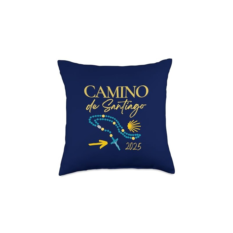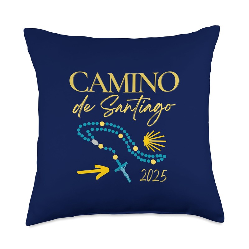 Catholic Camino de Santiago Scallop Shell Arrow Rosary 2025 Throw Pillow