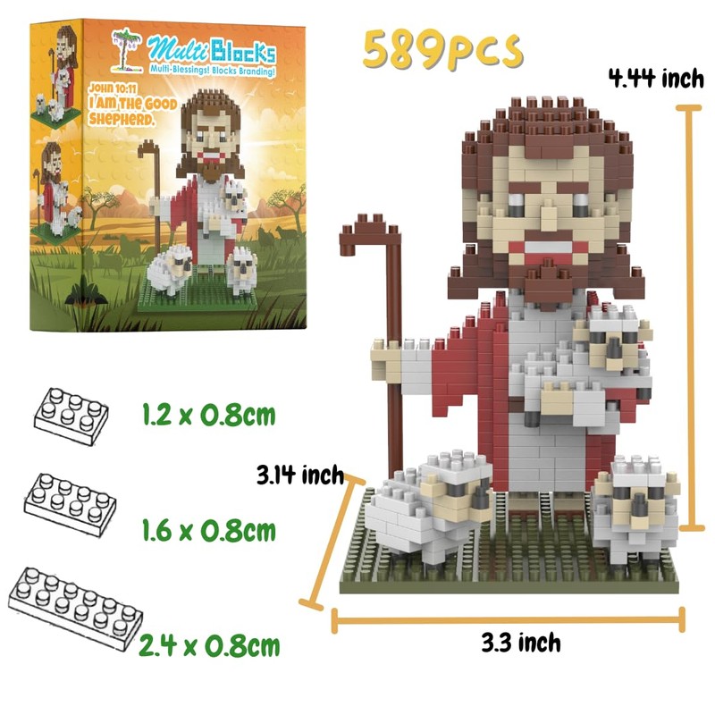 Catholic Series-I am The Good Shepherd Figurine, Bible Story, Christmas Party Gift, Jesus Toy, Collectable Building Set for Aged 14+, Great Gift for Teens and Adults (589Pcs/3.33x3.14x4.44inch)
