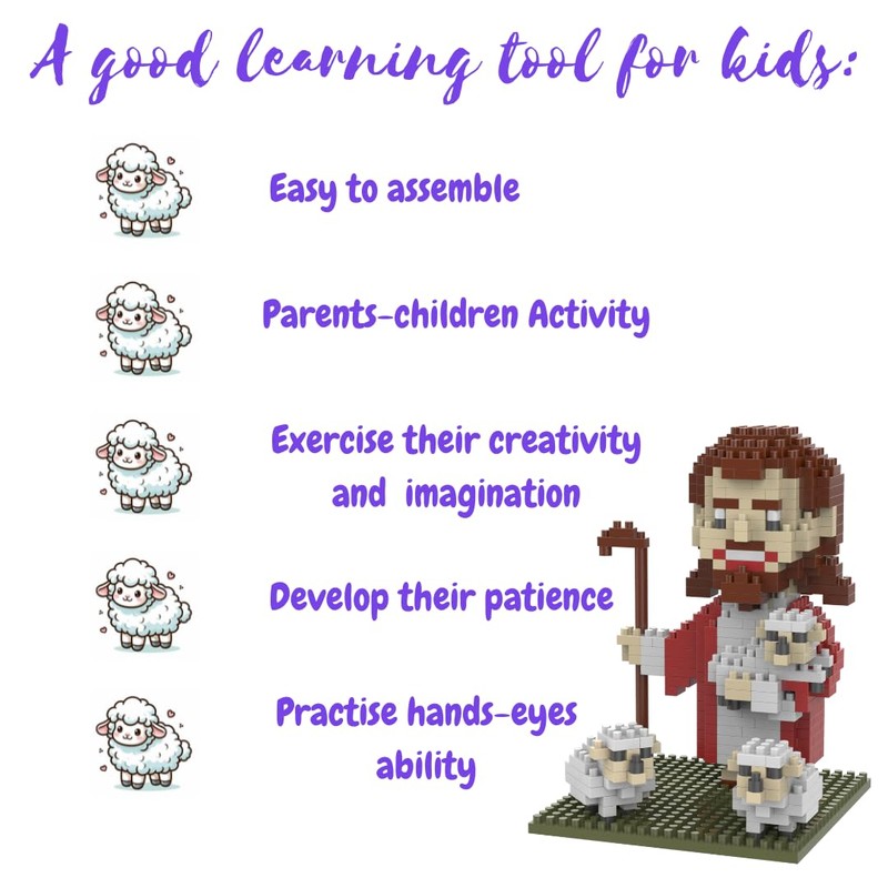 Catholic Series-I am The Good Shepherd Figurine, Bible Story, Christmas Party Gift, Jesus Toy, Collectable Building Set for Aged 14+, Great Gift for Teens and Adults (589Pcs/3.33x3.14x4.44inch)