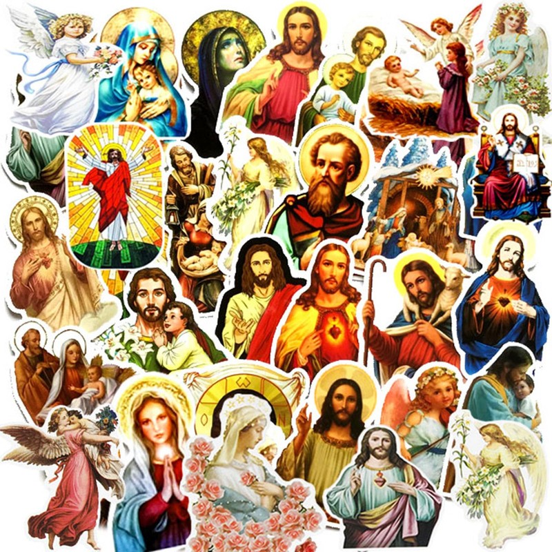 - 🎉【 Jesus Stickers 】Each set included 60 pcs no duplicates Jesus Theme Stickers packs, size about 1.8-3.4 inch. You would receive the stickers patterns you see in the pictures. Indoors and outdoors use.