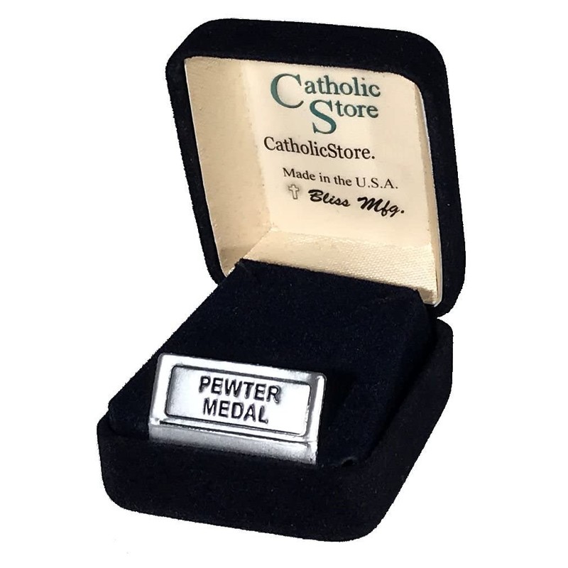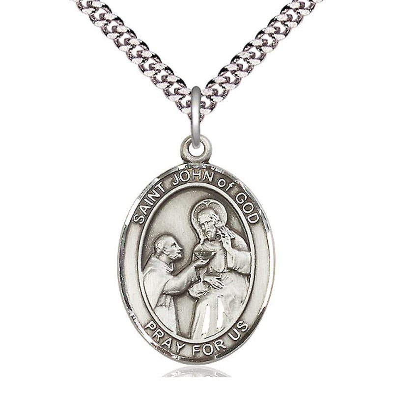 CatholicStore St. John of God Medal in Fine Pewter, 1" Tall on a 24" Light Rhodium Heavy Clasp Chain