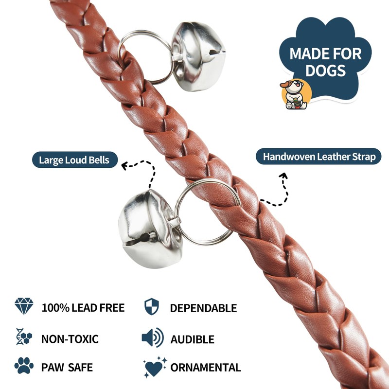 - Upgraded dog doorbell, using high-quality PU material, handmade two PU straps compiled together, there is no doubt that this in addition to looking good also has a very strong durability, training dogs without worrying about it will break.