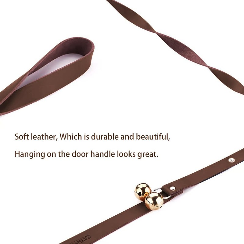 - If you do not want to install a dog door on your own door, this puppy bell will be a good choice, it is easy to use, just hang on the doorknob to start interaction with your puppy. Beautiful leather and bell can also serve as a nice decoration, if hanging the bell on the door handle causes inconvenience, you can buy our hook - B08RY66WD2, stick it in a suitable location to hang the bell.